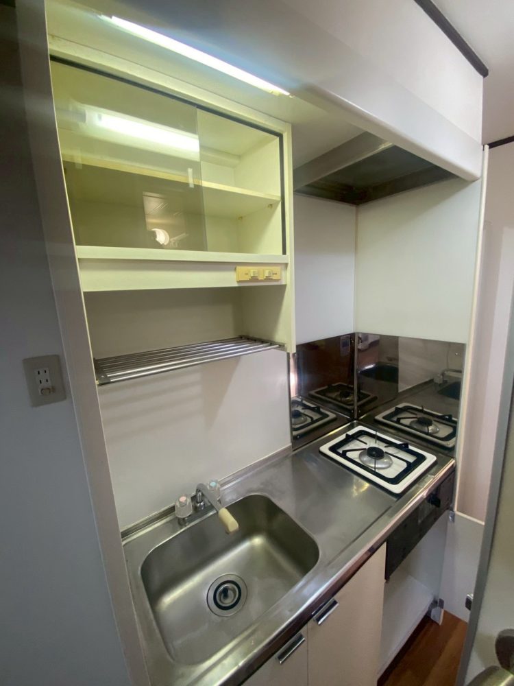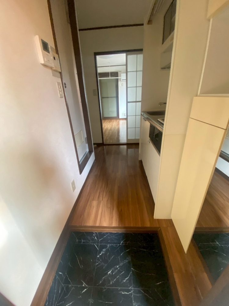 施行内容は空室賃貸の室内クリーニング作業、ミニキッチンの棚補修、玄関靴棚の補修、雑工事を行いました。